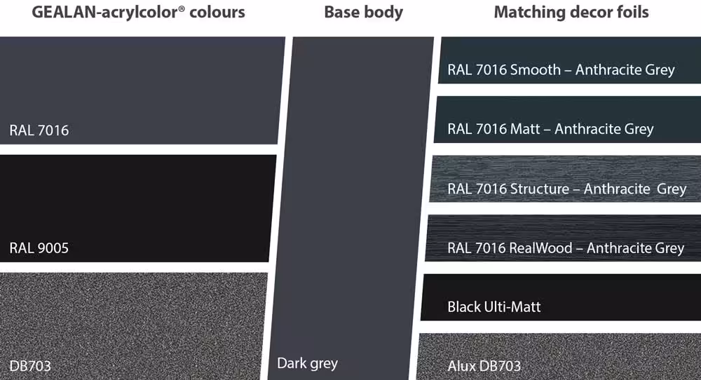 - GEALAN-acrylcolor® RAL 7021 – gris noir