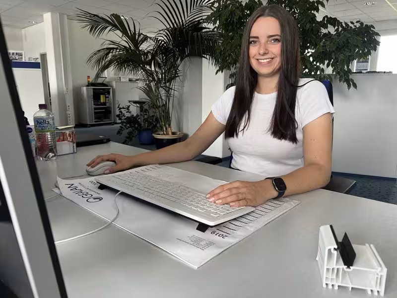 Sa collègue Gina Sebrich est désormais également employée permanente chez GEALAN. Elle a terminé avec succès sa formation pendant l’été et travaille maintenant dans les ventes internes. « Au cours de mon apprentissage, j’ai pu connaître de nombreux domaines chez GEALAN : j’ai commencé dans la comptabilité, puis dans le département marketing, plus tard dans les achats et enfin dans la vente. » Pour Gina Sebrich, ce fut une excellente occasion de connaître les multiples facettes des tâches administratives – et de découvrir par elle-même ce qui lui convient ou non : « Dans la vente, j’ai tout de suite remarqué que c’était un bon choix pour moi. L’ambiance dans l’équipe est géniale, j’aime mes tâches, il est rapidement devenu clair pour moi que je voulais rester ici. »